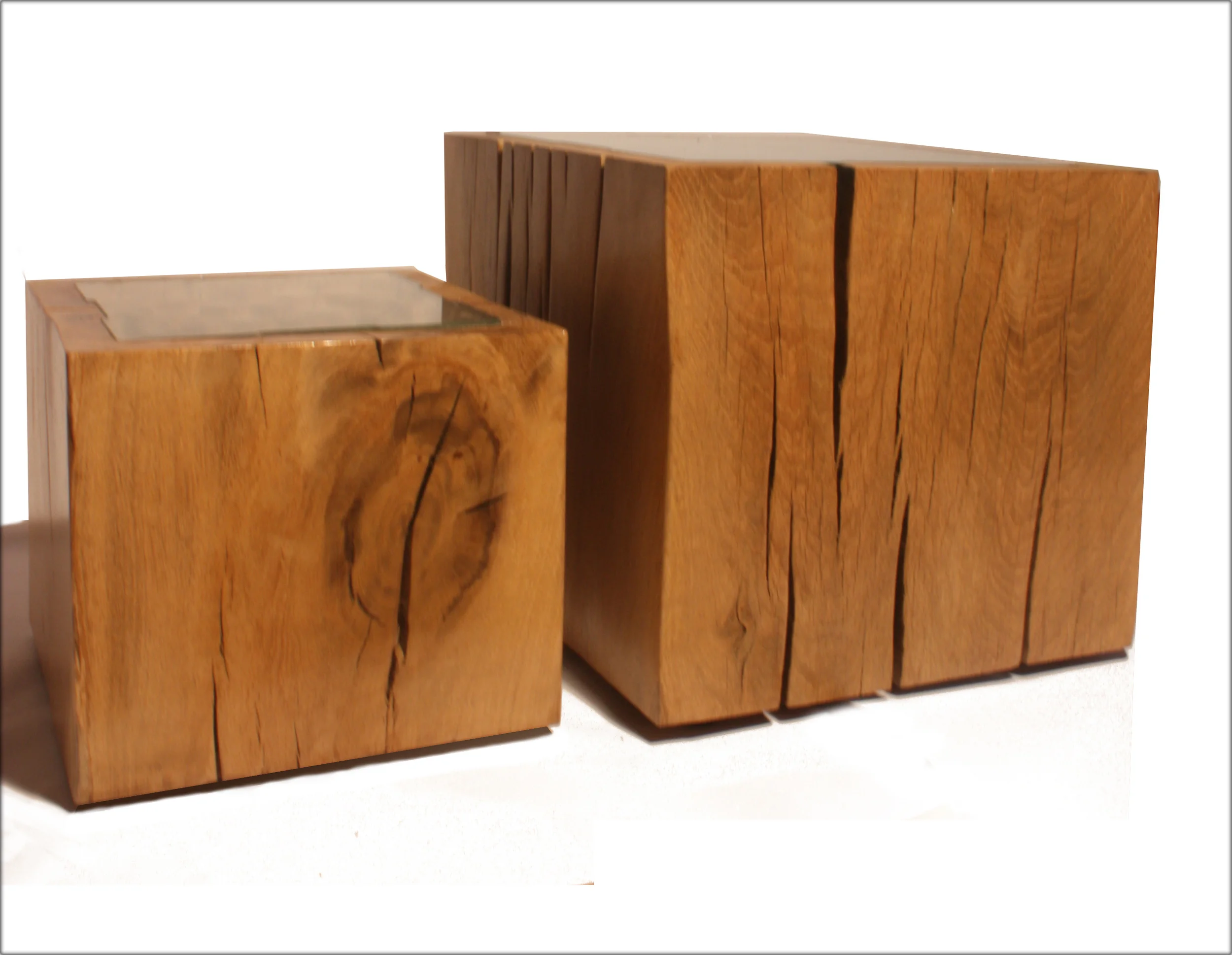 Sustainably sourced solid English Oak Cubes with layers of cut glass inlayed